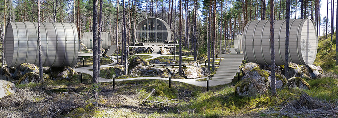 Det kommer att byggas en konferensanläggning i anslutning till glashotellet och därefter stugor för övernattning. Dom kommer att byggas av samma material som tuben som leder vattnet till kraftstationen, och kommer att få samma utseende.
